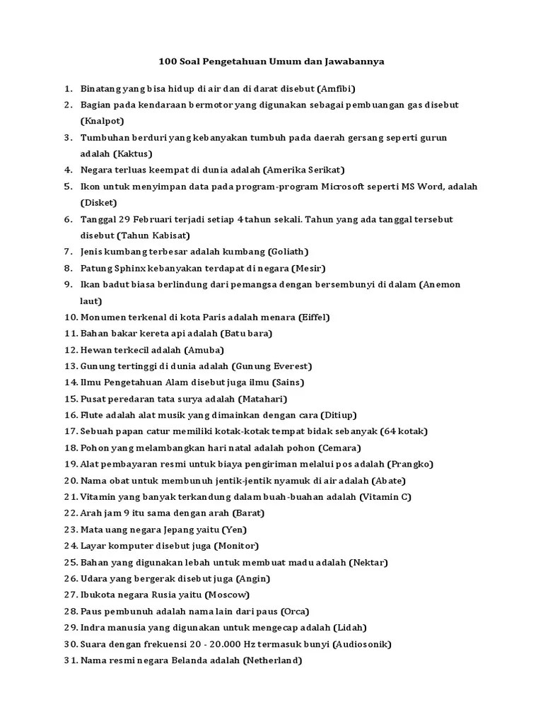 Soal Pengetahuan Umum Untuk Anak Tk : Soal Soal Tentang Pengetahuan Umum Belajar : soal terbaru 9 nov 2019.